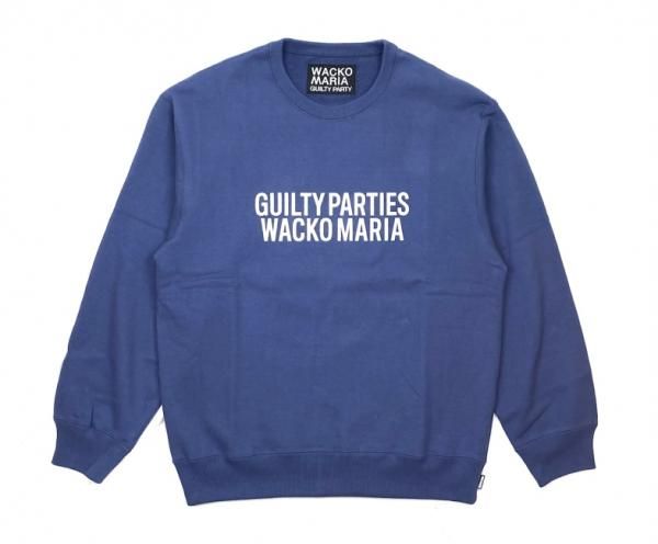 フロントに GUILTY PARTIES WACKO MARIA のロゴプリントを配置した、柔らかく肉厚なヘビーウェイトのクルーネックスウェットです。