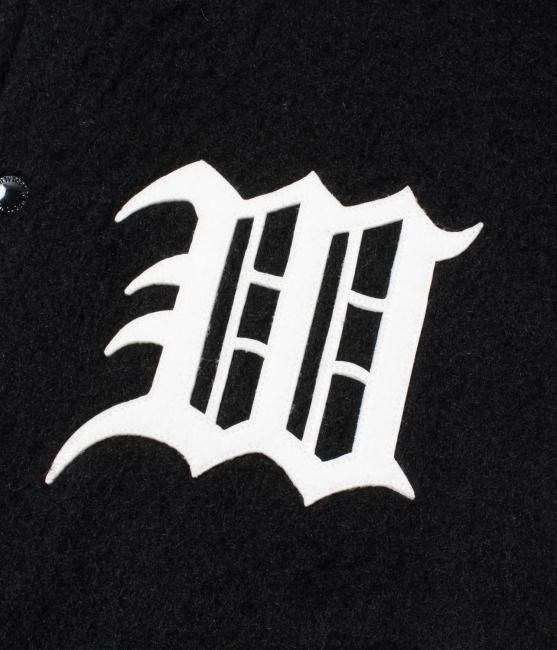 左胸にWロゴのフェルト生地を縫い付けています。バックは無地のバーシティージャケット。