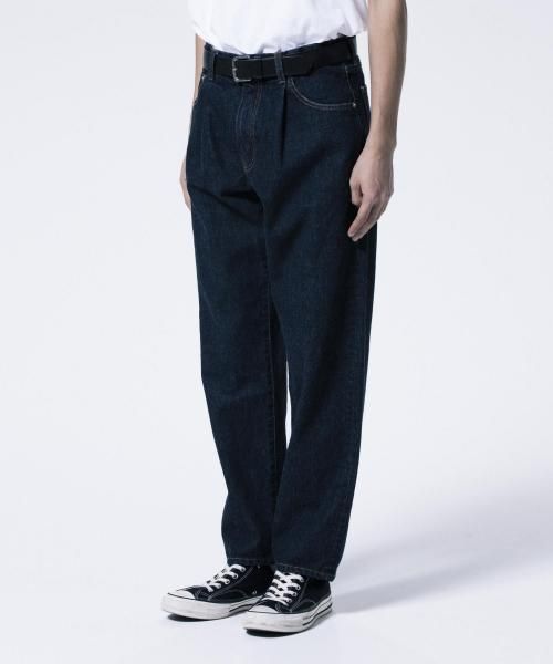 タックを取ってゆとりのあるシルエットに仕上げています。シルエットが崩れにくく ややルーズな雰囲気のデニムパンツ。