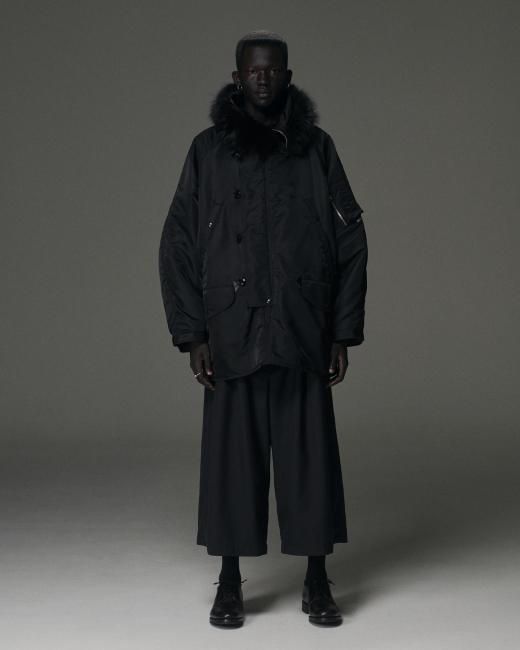 COOTIE PRODUCTIONSオリジナルのワイドシルエットでミディアム丈のN-3Bフライトジャケット、ジャストフィットでも落ち感、抜け感も感じられる細部のサイズバランスの良い着用感です。